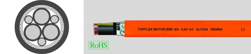 Кабель TOPFLEX® MOTOR EMV 3/3 для частотных преобразователей в соответствии с двумя стандартами, с тройным экраном обеспечивает отличные показатели ЭМС в установках и системах.