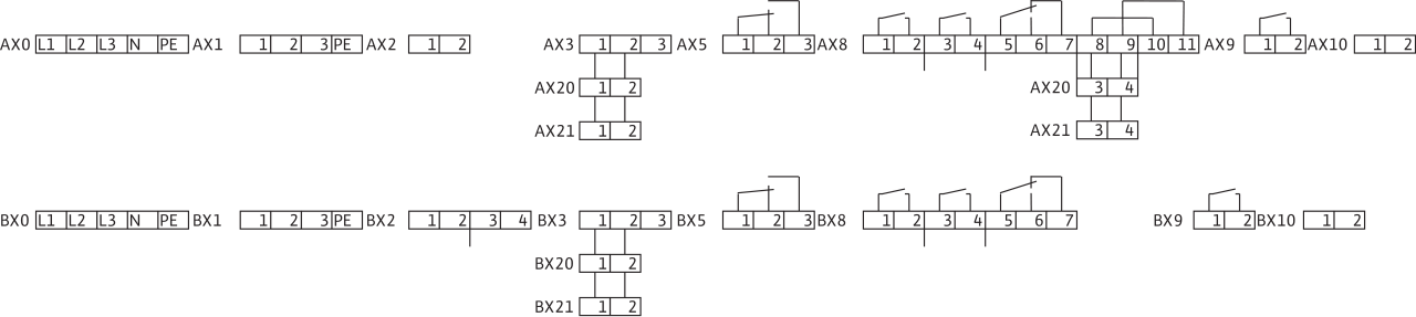AX9: беспотенциальный контакт; 1, 2 – контроль сети питания