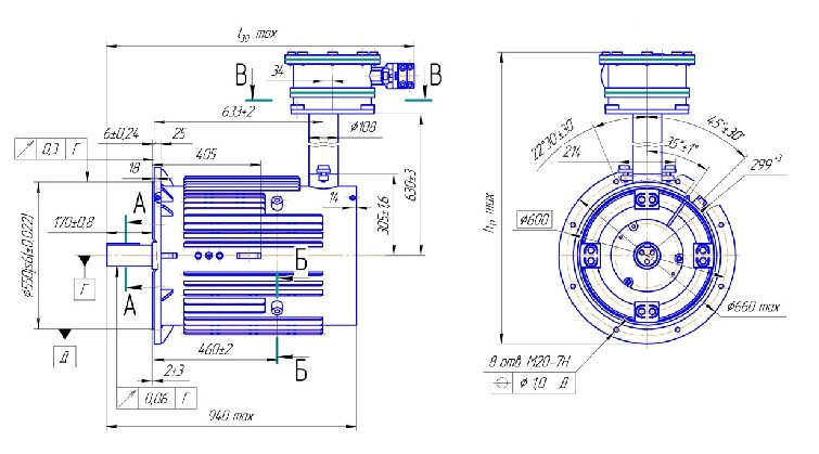 Двигатели рассчитаны для работы от сети переменного тока частотой 50 Гц с номинальным напряжением 380/660 или 660/1140 В в продолжительном режиме S1 по ГОСТ Р 52776-2007.