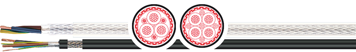 Силовой контрольный и соединительный кабель для систем привода с частотным преобразователем для постоянной прокладки и гибкого присоединения в свободном движении без растягивающей нагрузки. Для применения в сухих, влажных и мокрых помещениях. Kабель версии с K в черной оболочке можно использовать на открытом воздухе, кабель не подходит для прямой прокладки в земле.