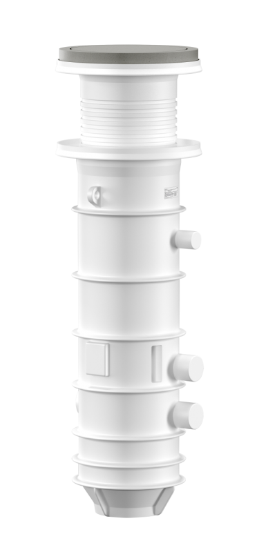 Готовая к монтажу шахта из синтетического материала (коррозионностойкого полиэтилена) в монолитном исполнении без уплотнительных поверхностей, опционально дооснащается телескопическим удлинением. С геометрией шахты, исключающей образование отложений, и подъемными серьгами для удобства перемещения и транспортировки. Защищена от всплытия в случае подъема уровня грунтовых вод до верхней кромки грунта без дополнительных бетонных балластных грузов, предоставляемых заказчиком. Погружной дренажный насос с интегрированным обратным клапаном, смонтированный непосредственно на напорном трубопроводе и установленный на дно шахты. Муфтовая запорная задвижка с опциональным удлинителем рукоятки. Включая цепь в качестве приспособления для подъема насоса. Крышка шахты по классам A 15 и B 125 согласно EN 124, устанавливаемая непосредственно на шахту без плиты распределения нагрузки, опционально доступна крышка класса D 400 (с предоставляемой заказчиком плитой распределения нагрузки).