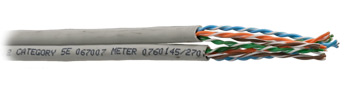 Краткое описание: Неэкранированный кабель передачи данных (UTP), парный (FIG-8), кат. 5е, 8 пар, 24 AWG, 100 Ом, соответствует требованиям стандарта ISO/IEC 11801 к системам класса D (к категории 5е по стандарту IEC 61156). Кабель содержит 8 витых пар, разделенных на 2 группы и сплетенных вместе по 4 пары. Витые пары защищенные огнестойкой ПВХ-оболочкой для внутренней стационарной прокладки.