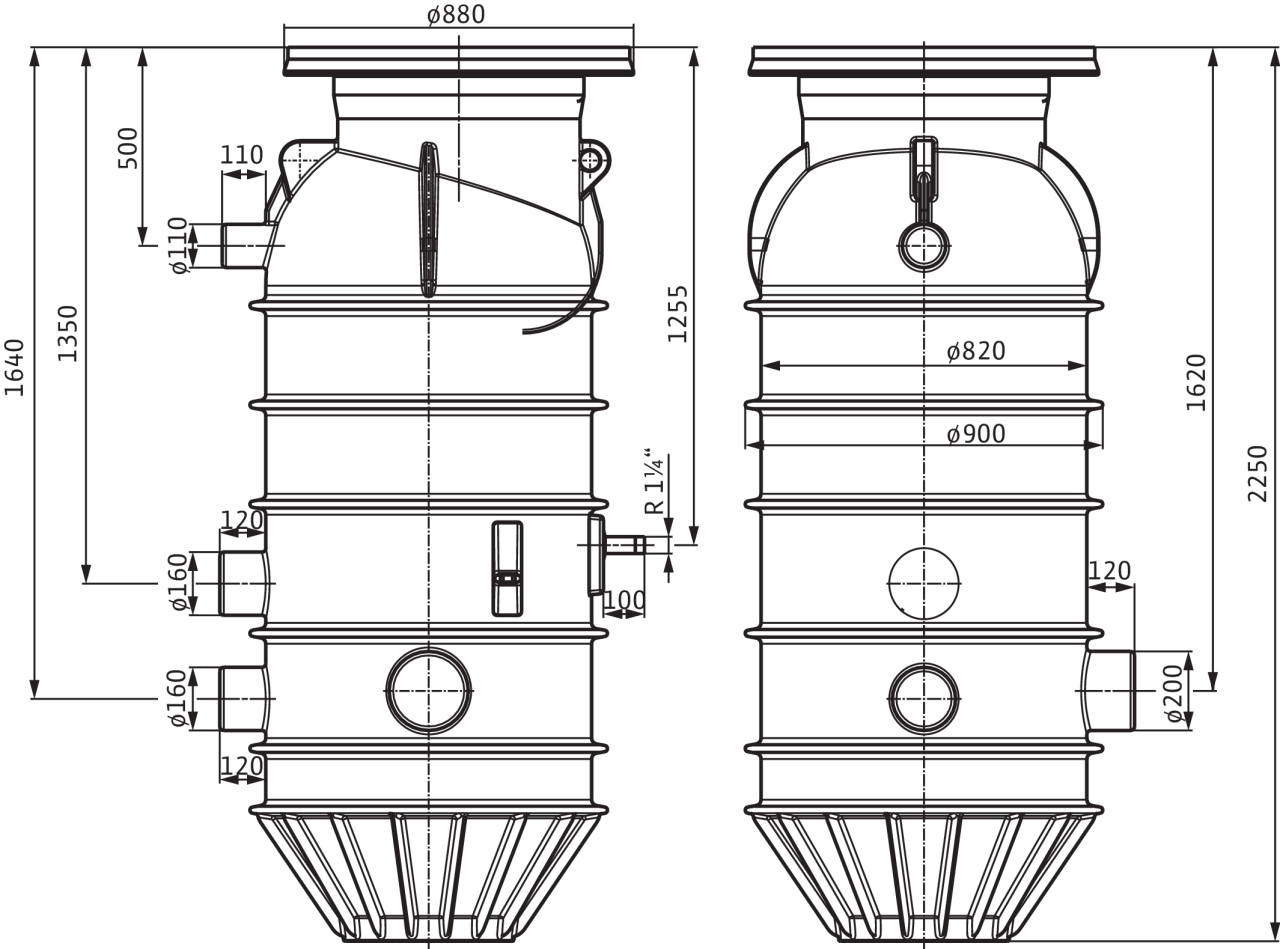 Готовая к монтажу шахта из синтетического материала (коррозионностойкого полиэтилена) в монолитном исполнении без уплотнительных поверхностей, опционально оснащается телескопическим удлинением. Сертифицирован по (DIN) EN 12050-1 с геометрией шахты, исключающей образование отложений, и подъемными серьгами для удобства перемещения и транспортировки. Защищена от всплытия в случае подъема уровня грунтовых вод до верхней кромки грунта без дополнительных бетонных балластных грузов, предоставляемых заказчиком. Съемный угловой шаровой обратный клапан на напорном патрубке насоса для надежного закрытия, так всегда имеется подпор. Расположенная над водой муфта с приспособлением для опционального подсоединения для промывки и прерывателя вакуума. Расположенная над водой муфта для быстрого и удобного монтажа насоса и приспособление для опционального подсоединения для промывки и прерывателя вакуума. Муфтовая запорная задвижка с опциональным удлинителем рукоятки. Включая цепь в качестве приспособления для подъема насоса. Крышка шахты по классам A 15 и B 125 согласно EN 124, устанавливаемая непосредственно на шахту без плиты распределения нагрузки, по опции доступна крышка класса D 400 (с предоставляемой заказчиком плитой распределения нагрузки).