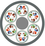 Краткое описание: Многоэлементный кабель категории 5е, соответствующий требованиям стандартов ANSI/TIA/EIA-568-A.5 и ISO/IEC 11801, содержит 6 FTP-кабелей, каждый из которых, в свою очередь, состоит из 4 витых пар, сплетенных вместе, помещенных в общий экран из фольги и оболочку из серого ПВХ-компаунда. Все 6 элементов свиты вместе и защищены оболочкой из ПВХ-компаунда светло-серого цвета для внутренней стационарной прокладки.