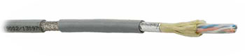Описание конструкции Кабель состоит из одной индивидуально экранированной алюминиевой фольгой витой пары и двух силовых проводников, уложенных вместе и помещенных в общий экран из медной оплетки. Витая пара (28 AWG) предназначена для передачи данных, а силовые проводники (24 AWG) – для подачи питания. Конструкция защищена внешней оболочкой из огнестойкого безгалогенного полиуретана (ZHPU). Материал внешней оболочки обладает повышенной гибкостью, устойчив к воздействию УФ излучения..