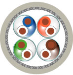 3. Конструкция сердечника: Все 4 пары свиты вокруг одножильного дренажного проводника из луженой меди (22 AWG)