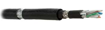 Описание конструкции Кабель состоит из четырех витых пар, сплетенных вместе с дренажным проводом и экранированных алюминиевой фольгой и медной оплеткой. Конструкция защищена внутренней оболочкой из огнестойкого малодымного безгалогенного компаунда, бронирована стальной проволокой и покрыта внешней оболочкой из огнестойкого малодымного безгалогенного компаунда (LSZH). Материал внешней оболочки устойчив к воздействию УФ излучения.