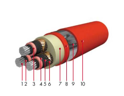 - 1: алюминиевая круглая уплотненная токопроводящая жила