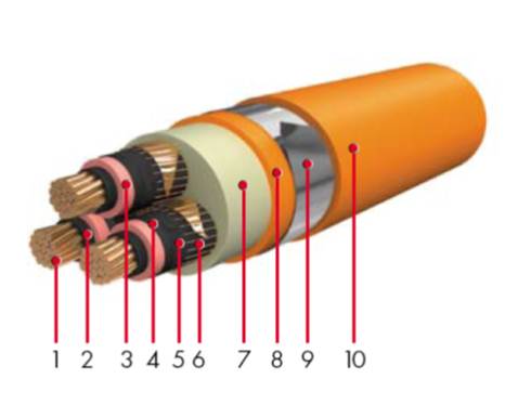 - 3: изоляция из сшитой этиленпропиленовой резины (EPR)