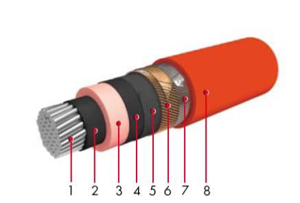 - 1: алюминиевая круглая уплотненная токопроводящая жила