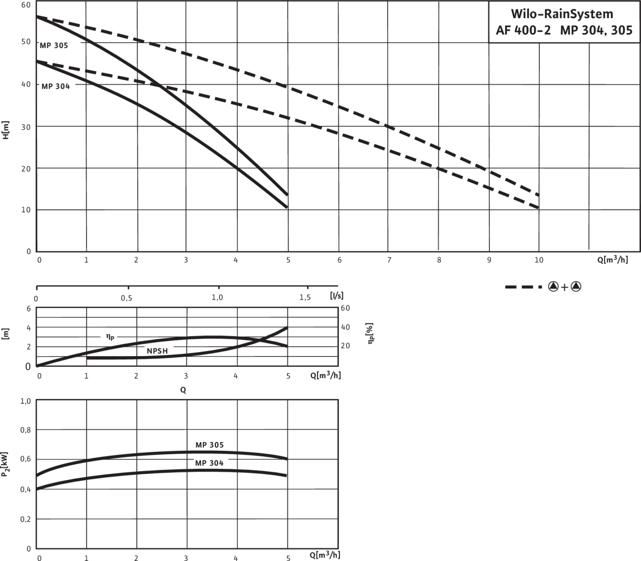 Характеристики Wilo-RainSystem AF 400-2MP 304 - 305
