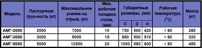 Магнитные грузоподъёмные захваты используются в качестве навесных грузозахватных приспособлений для грузоподъёмных машин при перемещении изделий из углеродистых сталей и чугунов. ЗАО "Русский Промышленный Инструмент" предлагает магнитные захваты серии АМГ-2000,АМГ-3000,АМГ-5000 грузоподъёмностью от 1 000 до 5 000 кг. Включение и выключение магнитной системы захвата серии ЭРГА АМГ осуществляются без участия стропальщика - подъёмом такелажной скобы захвата в крайнее верхнее положение. Простота эксплуатации магнитных захватов серии АМГ позволяет многократно увеличить скорость работ по перемещению грузов. Магнитные захваты серии АМГ – универсальны, геометрия магнитной подошвы захватов позволяет использовать их для удержания грузов как с плоскими, так и с цилиндрическими поверхностями.Все магнитные захваты серии АМГ проходят тщательную проверку и испытания на поверенном стенде, к отгрузке допускаются изделия с коэффициентом безопасности не менее 3,2 (отношение отрывного усилия к номинальной грузоподъёмности). Высокая безопасность магнитных захватов серии ЭРГА АМГ подтверждена разрешением Ростехнадзора и сертификатом соответствия ГОСТ Р. Для перемещения длинномерного металлопроката используются оснащённые демпферными устройствами магнитные траверсы серии ТАМГ. Применение магнитных траверс позволяет обеспечить равномерное распределение нагрузки между магнитными захватами и избежать деформаций перемещаемых изделий. Уникальные запатентованные магнитные системы на основе постоянных редкоземельных магнитов обеспечивают долгую эффективную работу магнитных захватов серии АМГ. Гарантированный срок сохранения свойств магнитных систем при условии соблюдения правил эксплуатации – 10 лет. Магнитные захваты серии АМГ имеют множество преимуществ перед электромагнитными аналогами – полное отсутствие энергопотребления, существенно большую эксплуатационную надёжность, меньшие габаритные размеры и массу.