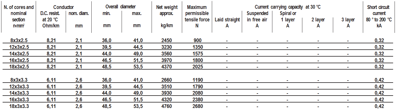 Сердечники идентификации: черный с цифровой маркировкой +1 зеленый / желтый, каждый сердечники последовательно пронумерованы (тройной с зеленый / желтый сердечник во внешнем слое)