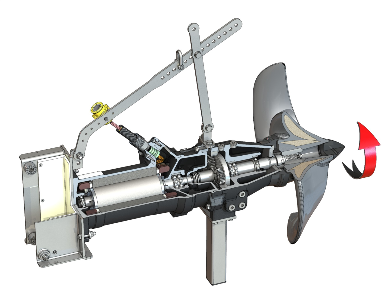 Тип пропеллера3-лопастный пропеллер с самоочищающейся ступицей; изогнут в обратном направлении; благодаря этому защищен от засорения и наматывания