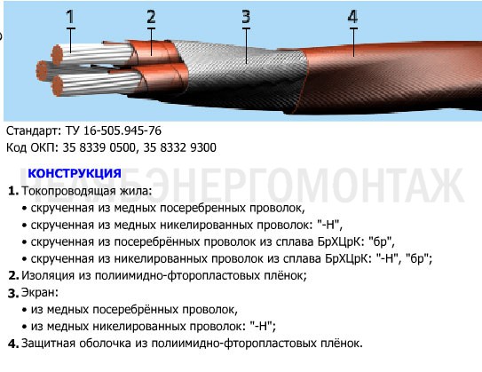 | Электрическое сопротивление изоляции, не менее [МОм*км] | 100000 |