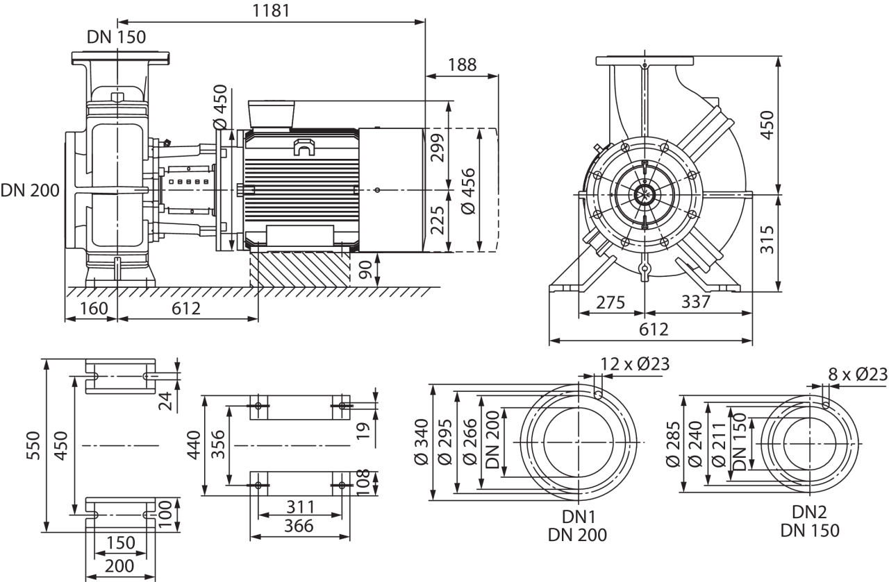Номинальный внутренний диаметр фланца (на стороне всасывания)DN 200