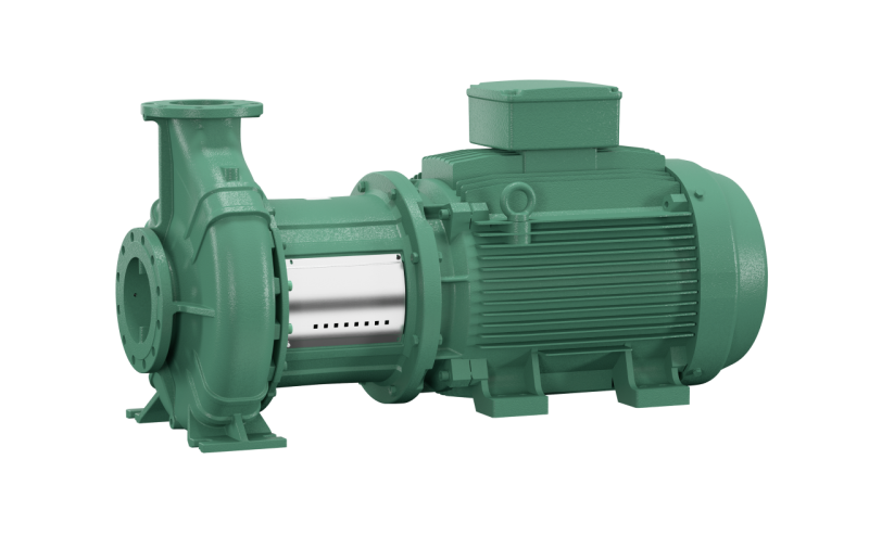 Одноступенчатый центробежный насос с сухим ротором блочного типа для установки на фундаменте. Блочное исполнение с низким уровнем шума и вибрации с промежуточным корпусом и неподвижно присоединенным унифицированным (стандартным) электродвигателем. С не зависящим от направления вращения сильфонным скользящим торцевым уплотнением (от 37 кВт/4-контактного и 45 кВт/2-контактного с картриджным торцевым уплотнением в системе Back-Pull-Out для замены скользящего торцевого уплотнения без демонтажа электродвигателя) и снижающим кавитацию рабочим колесом. Фланцы имеют штуцеры R 1/8 для измерения давления. На корпус насоса и промежуточный корпус нанесено катафорезное покрытие. Серийные электродвигатели с технологией IE3.