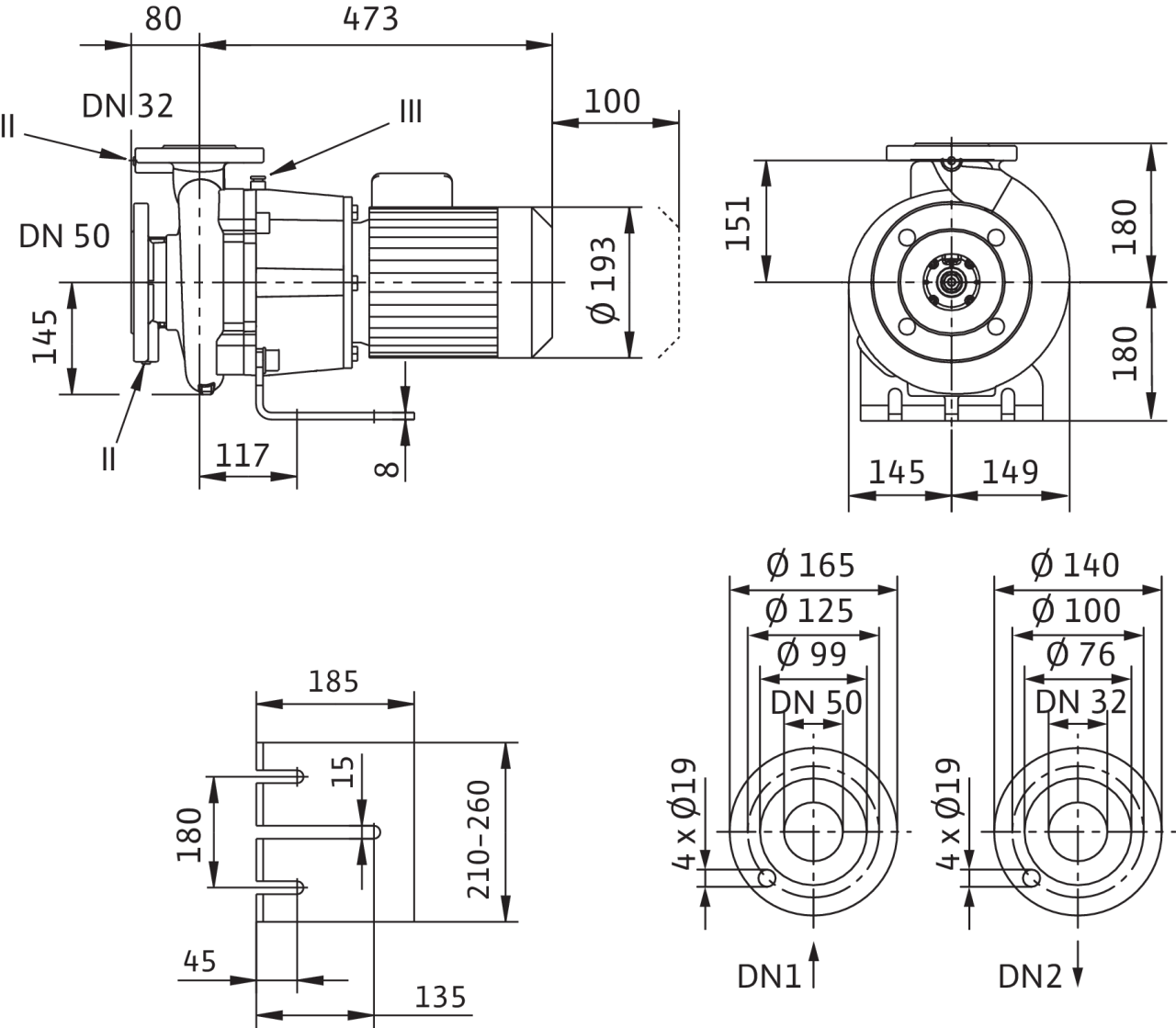 Номинальный внутренний диаметр фланца (на стороне всасывания)DN 50