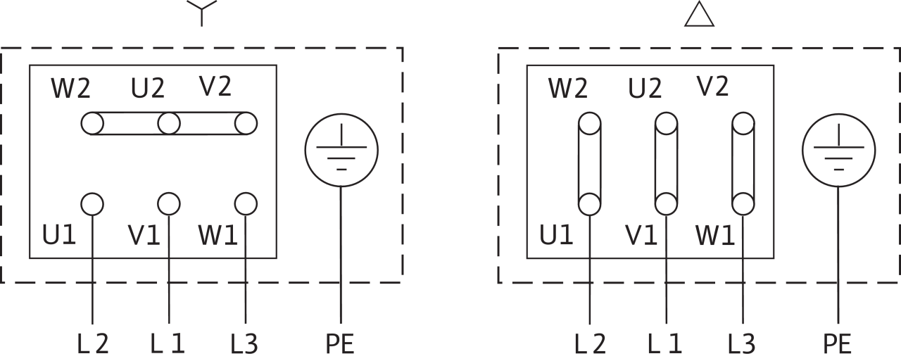 Защитный выключатель электродвигателя должен предоставляться заказчиком. Контролировать направление вращения! Для изменения направления вращения поменять местами любые две фазы.