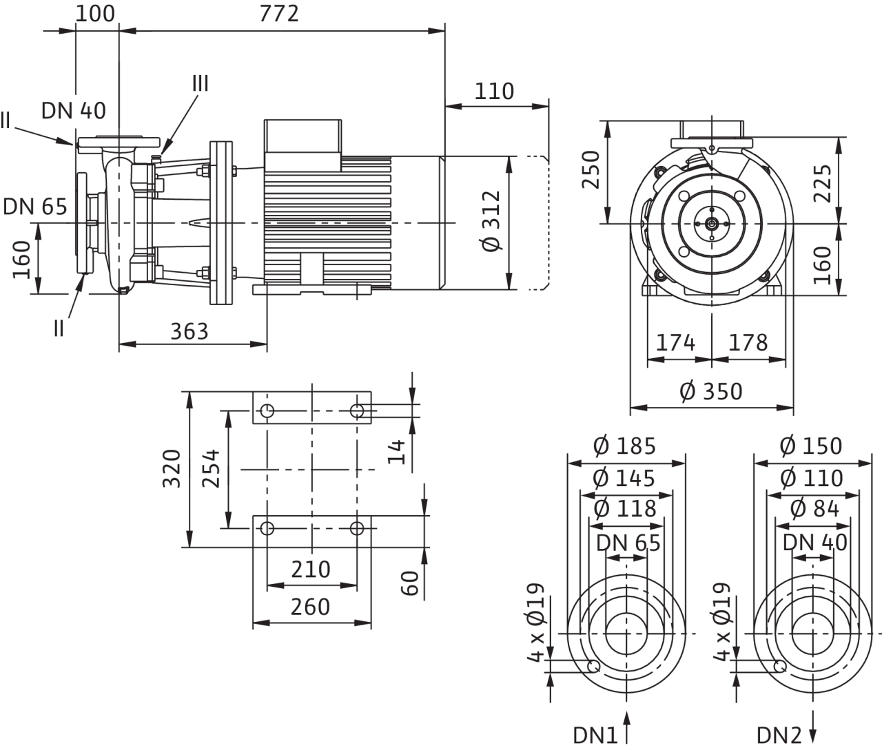 Номинальный внутренний диаметр фланца (на стороне всасывания)DN 65
