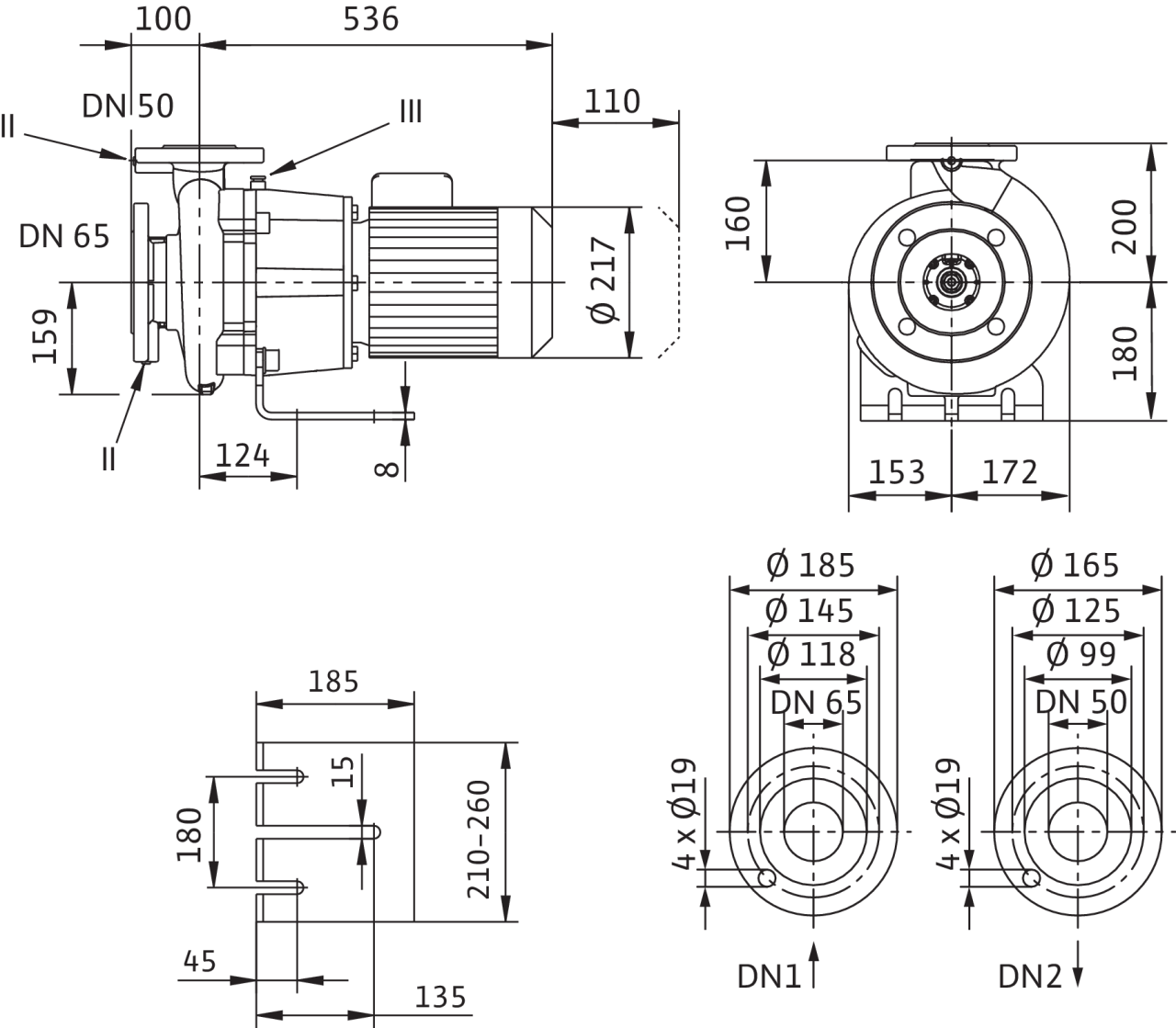 Номинальный внутренний диаметр фланца (на стороне всасывания)DN 65