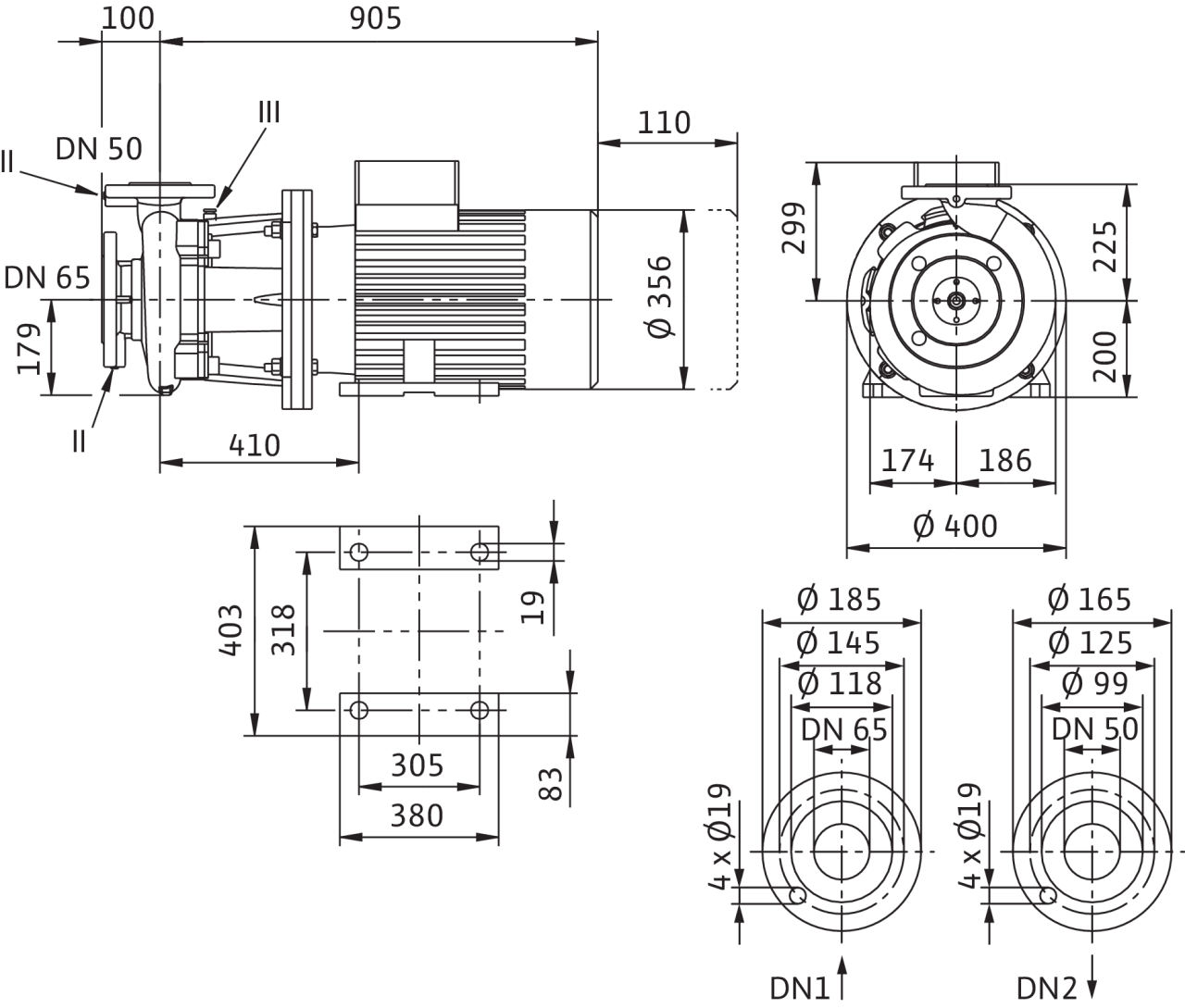 Одноступенчатый центробежный насос с сухим ротором блочного типа для установки на фундаменте. Блочное исполнение с низким уровнем шума и вибрации с промежуточным корпусом и неподвижно присоединенным унифицированным (стандартным) электродвигателем. С не зависящим от направления вращения сильфонным скользящим торцевым уплотнением (от 37 кВт/4-контактного и 45 кВт/2-контактного с картриджным торцевым уплотнением в системе Back-Pull-Out для замены скользящего торцевого уплотнения без демонтажа электродвигателя) и снижающим кавитацию рабочим колесом. Фланцы имеют штуцеры R 1/8 для измерения давления. На корпус насоса и промежуточный корпус нанесено катафорезное покрытие. Серийные электродвигатели с технологией IE3.