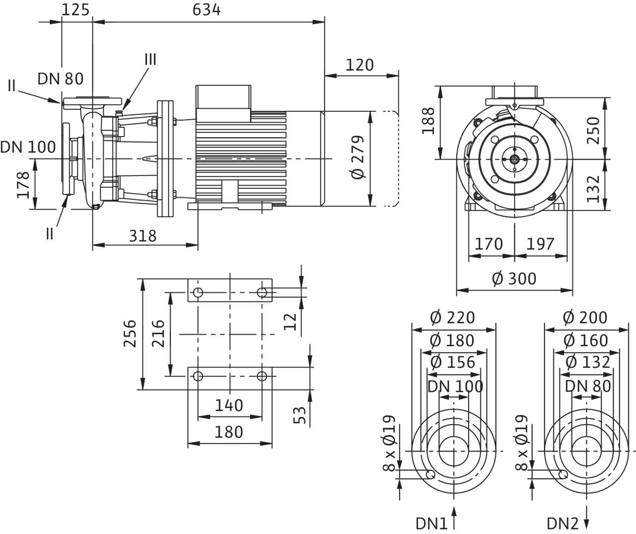 II отверстие для измерения давления R1/8; III удаление воздуха R1/8