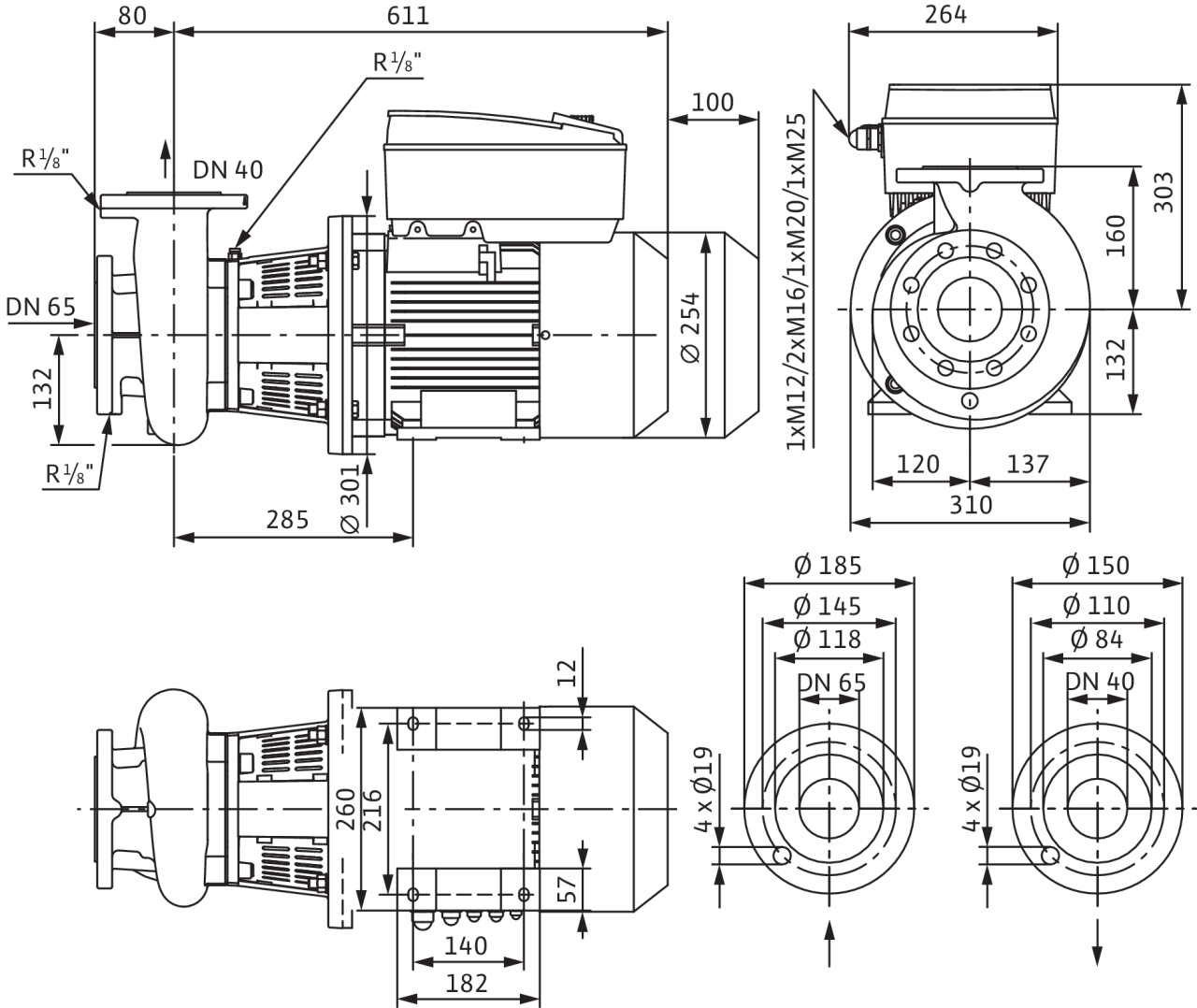 | Диапазон температур при макс. температуре окружающей среды +40 В°C | -20...+140 В°C (в зависимости от перекачиваемой среды) |
