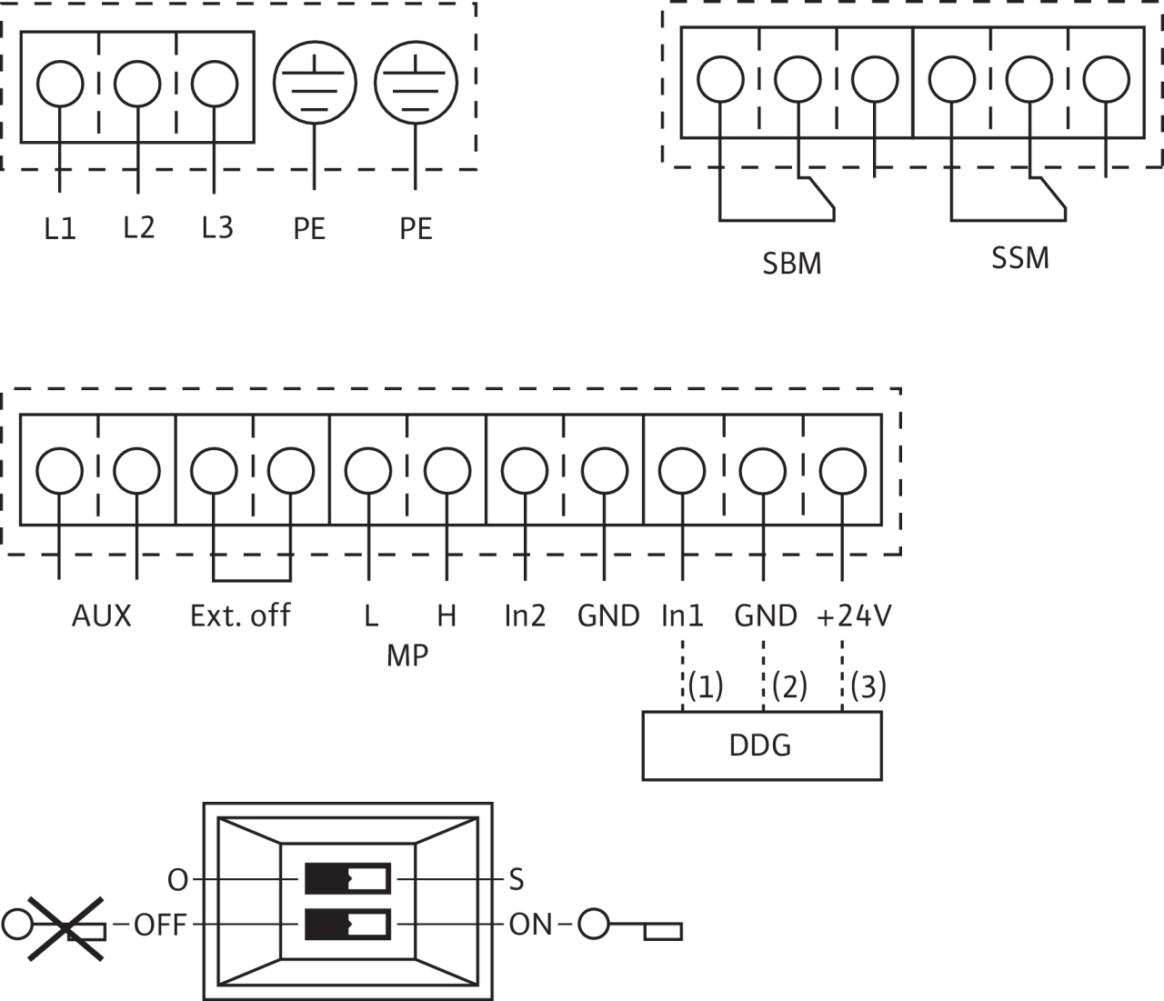 SBM:*беспотенциальная обобщенная сигнализация рабочего состояния (переключающий контакт по VDI 3814)