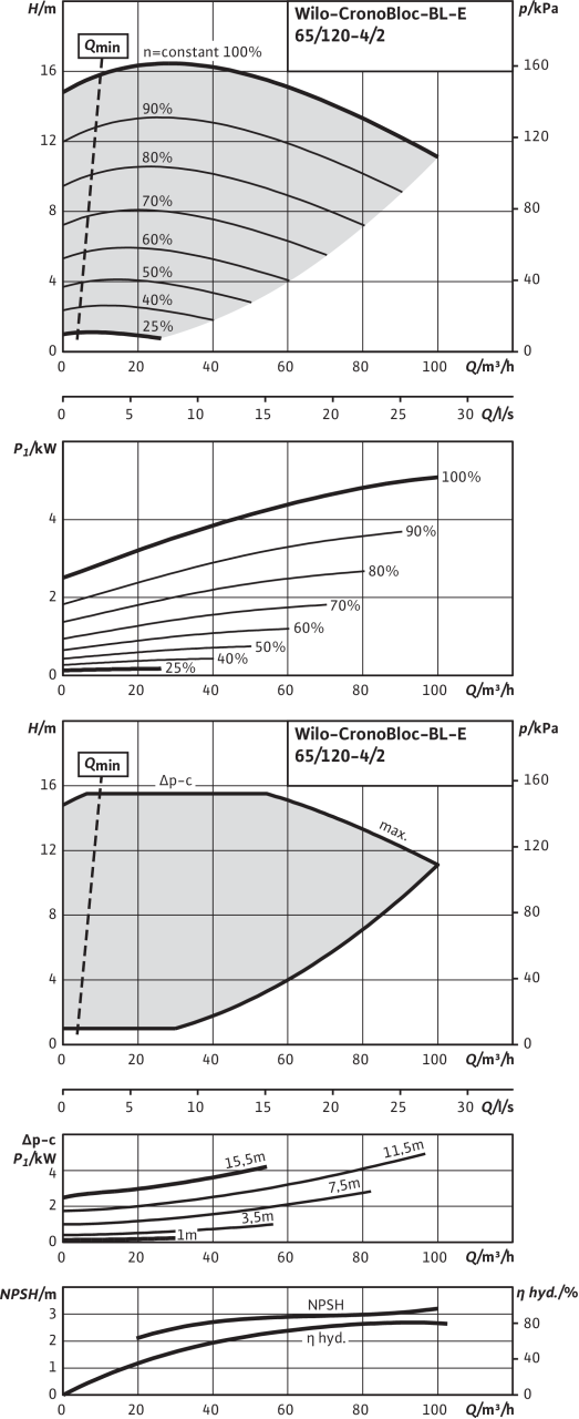 Одноступенчатый центробежный насос с сухим ротором блочного типа для установки на фундаменте со встроенным частотным преобразователем для электронного регулирования в т. ч. постоянного перепада давления (Δp-c). Насос можно эксплуатировать в режиме работы Δp-c только с внешним дифференциальным датчиком давления (комплект дифференциального датчика давления); его подключение не выполняется на корпусе насоса. Устройство CronoBloc-BL-E предназначено для перекачивания воды систем отопления (согласно VDI 2035), холодной воды и водогликолевых смесей без абразивных веществ в системах отопления, кондиционирования и охлаждения.