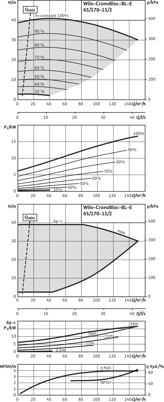Одноступенчатый центробежный насос с сухим ротором блочного типа для установки на фундаменте со встроенным частотным преобразователем для электронного регулирования в т. ч. постоянного перепада давления (Δp-c). Насос можно эксплуатировать в режиме работы Δp-c только с внешним дифференциальным датчиком давления (комплект дифференциального датчика давления); его подключение не выполняется на корпусе насоса. Устройство CronoBloc-BL-E предназначено для перекачивания воды систем отопления (согласно VDI 2035), холодной воды и водогликолевых смесей без абразивных веществ в системах отопления, кондиционирования и охлаждения.