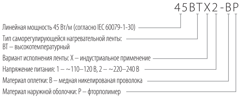 BTХ – это саморегулирующаяся нагревательная лента промышленного качества, которая используется для защиты от замерзания или поддержания заданной технологической температуры промышленных трубопроводов и резервуаров (и другого технологического оборудования), а также в системах с высокой температурой воздействия на нагревательную ленту. Она может быть отрезана до нужной длины по месту, точно в соответствии с длиной трубопровода, без каких-либо конструктивных сложностей. ВTХ одобрена для использования в безопасных и взрывоопасных зонах согласно мировым стандартам, а также стандартам ГОСТ Р 51330 и ГОСТ Р МЭК 62086. Характеристики саморегулирования повышают безопасность и надежность ленты. BTХ не будет перегреваться или перегорать, даже когда ее отдельные участки накладываются друг на друга. Ее тепловыделение саморегулируется в ответ на изменение температуры. Установка нагревательной ленты BTХ проста, занимает мало времени и не требует никаких специальных навыков или инструментов. Все компоненты для заделки концов, соединения и подключения питания имеются в удобных наборах.