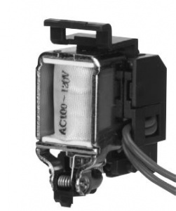Расцепитель минимального напряжения (R) – это устройство, которое используется для отключения компактного автоматического выключателя, когда напряжение основной цепи падает ниже заданного значения.