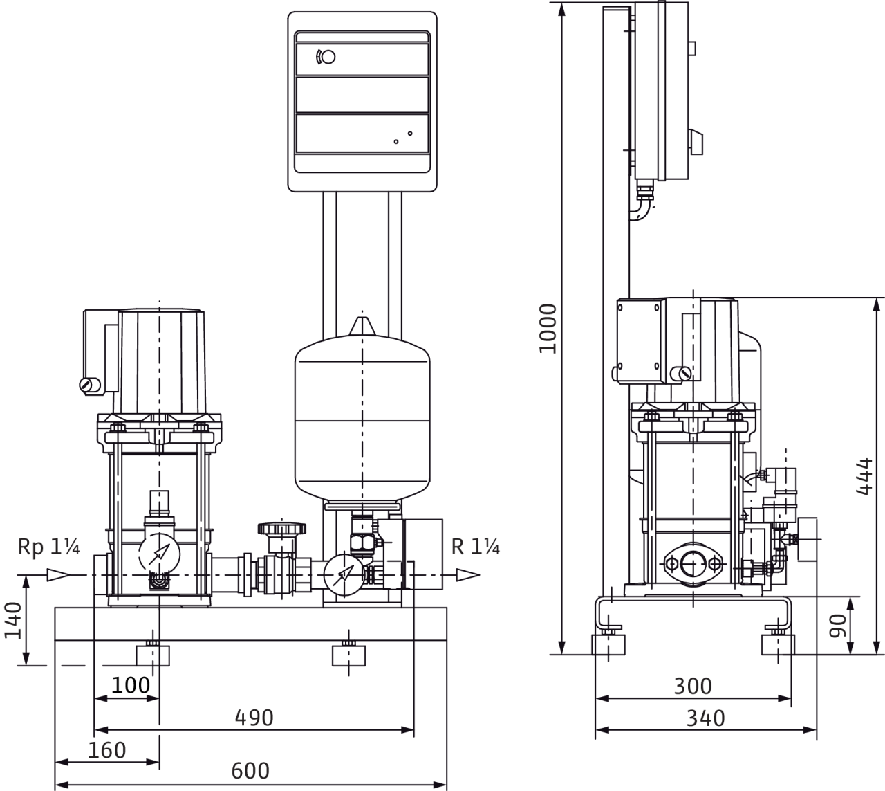 | Номинальный внутренний диаметр для подсоединения, на стороне всасывания | Rp 1ВЅ/ Rp 1Вј |