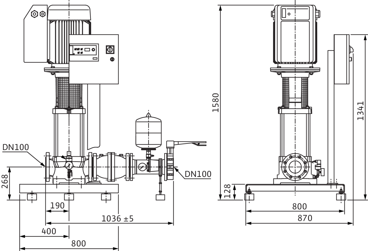 Компактная установка повышения давления для прямого или опосредованного подсоединения. Состоит из одного нормальновсасывающего вертикального высоконапорного центробежного насоса из нержавеющей стали с сухим ротором, при этом насос оснащен частотным преобразователем. Готовность к подключению, установка на опорной раме с системой трубопроводов из нержавеющей стали, включая прибор управления со всеми необходимыми измерительными и регулировочными устройствами.