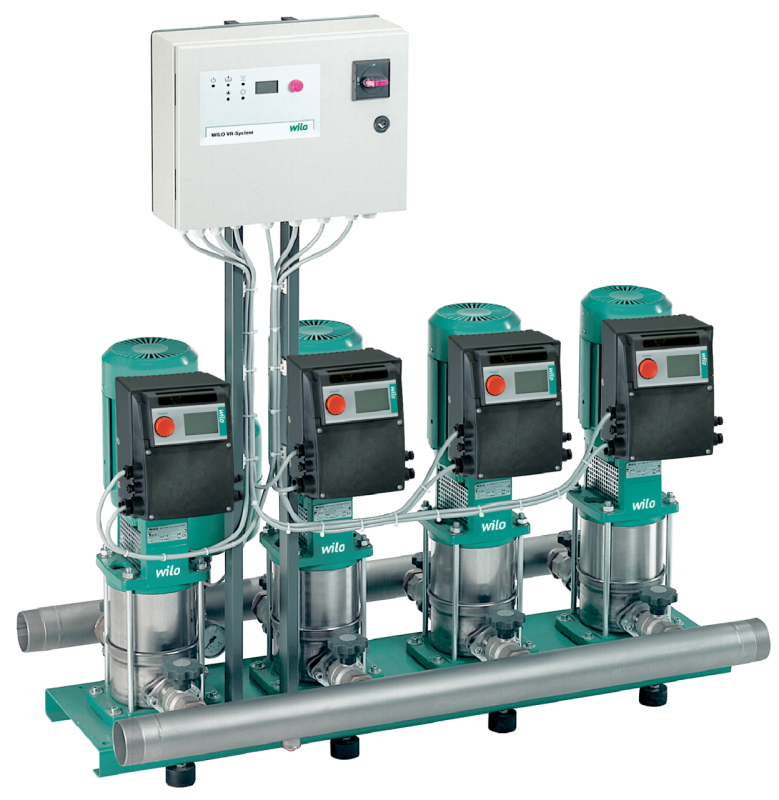 Компактная установка повышения давления согласно стандарту DIN 1988 и DIN EN 806, для прямого или опосредованного подсоединения. Состоит из нормальновсасывающих параллельно подключенных вертикальных высоконапорных центробежных насосов из нержавеющей стали с сухим ротором, при этом каждый насос оснащен собственным частотным преобразователем. Готовность к подключению, установка на опорной раме с системой трубопроводов из нержавеющей стали, включая прибор управления со всеми необходимыми измерительными и регулировочными устройствами.