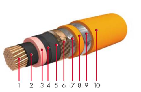- 1: медная круглая уплотненная токопроводящая жила