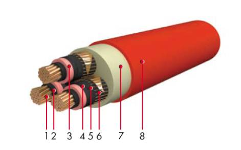- 3: изоляция из сшитой этиленпропиленовой резины (EPR)