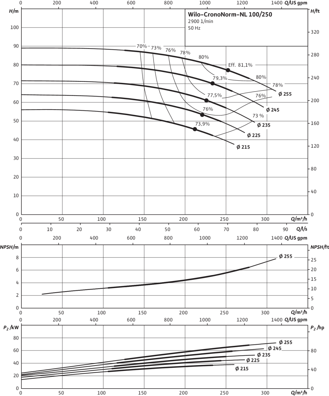 Электродвигатель IEC с 3 термодатчиками. Уплотнение вала посредством скользящего торцового уплотнения до температуры 120 В°C. Корпус из серого чугуна, вал из нержавеющей стали, рабочее колесо из серого чугуна (рабочее колесо из бронзы доступно за дополнительную плату). Электродвигатели с технологией IE3.