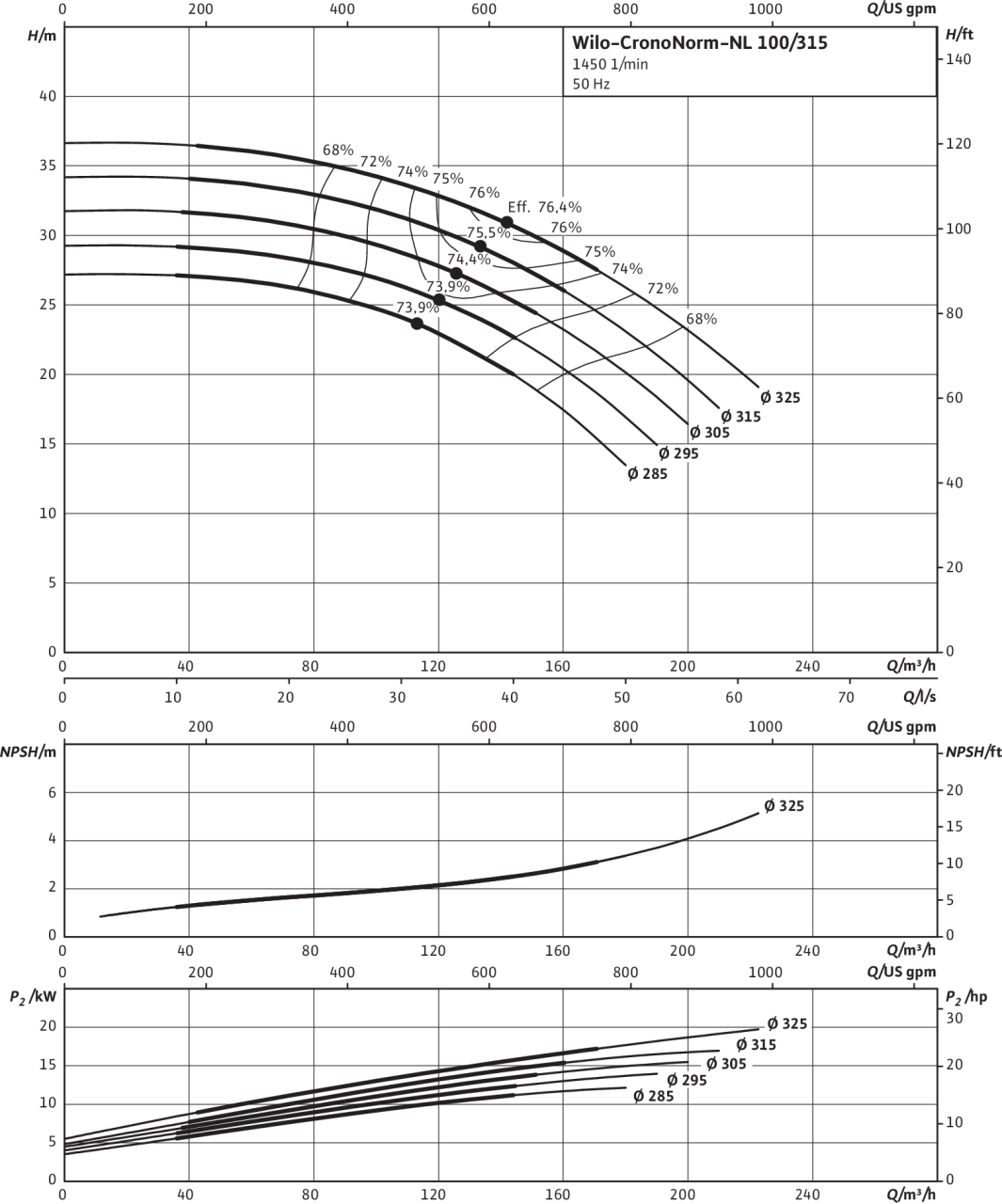 Электродвигатель IEC с 3 термодатчиками. Уплотнение вала посредством скользящего торцового уплотнения до температуры 120 В°C. Корпус из серого чугуна, вал из нержавеющей стали, рабочее колесо из серого чугуна (рабочее колесо из бронзы доступно за дополнительную плату). Электродвигатели с технологией IE3.