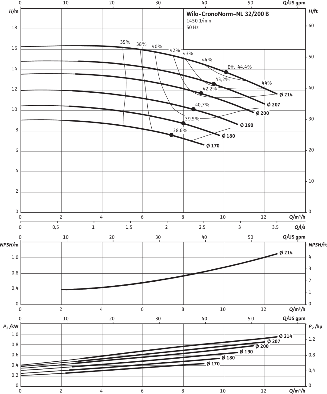 Электродвигатель IEC с 3 термодатчиками. Уплотнение вала посредством скользящего торцового уплотнения до температуры 120 В°C. Корпус из серого чугуна, вал из нержавеющей стали, рабочее колесо из серого чугуна (рабочее колесо из бронзы доступно за дополнительную плату). Электродвигатели с технологией IE3.