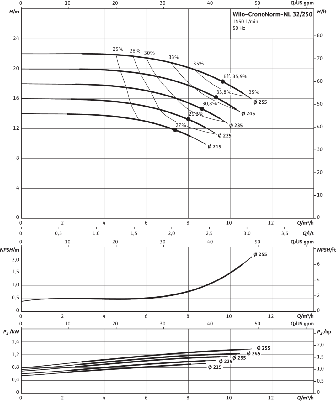 | Номинальный внутренний диаметр фланца (с напорной стороны) | DN 32 |