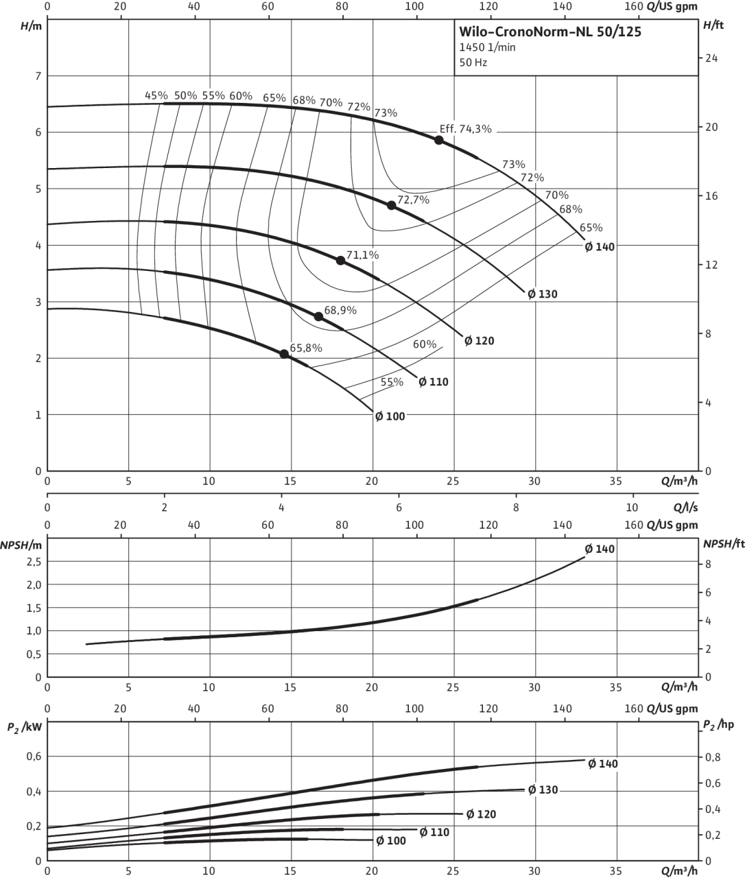 Электродвигатель IEC с 3 термодатчиками. Уплотнение вала посредством скользящего торцового уплотнения до температуры 120 В°C. Корпус из серого чугуна, вал из нержавеющей стали, рабочее колесо из серого чугуна (рабочее колесо из бронзы доступно за дополнительную плату). Электродвигатели с технологией IE3.
