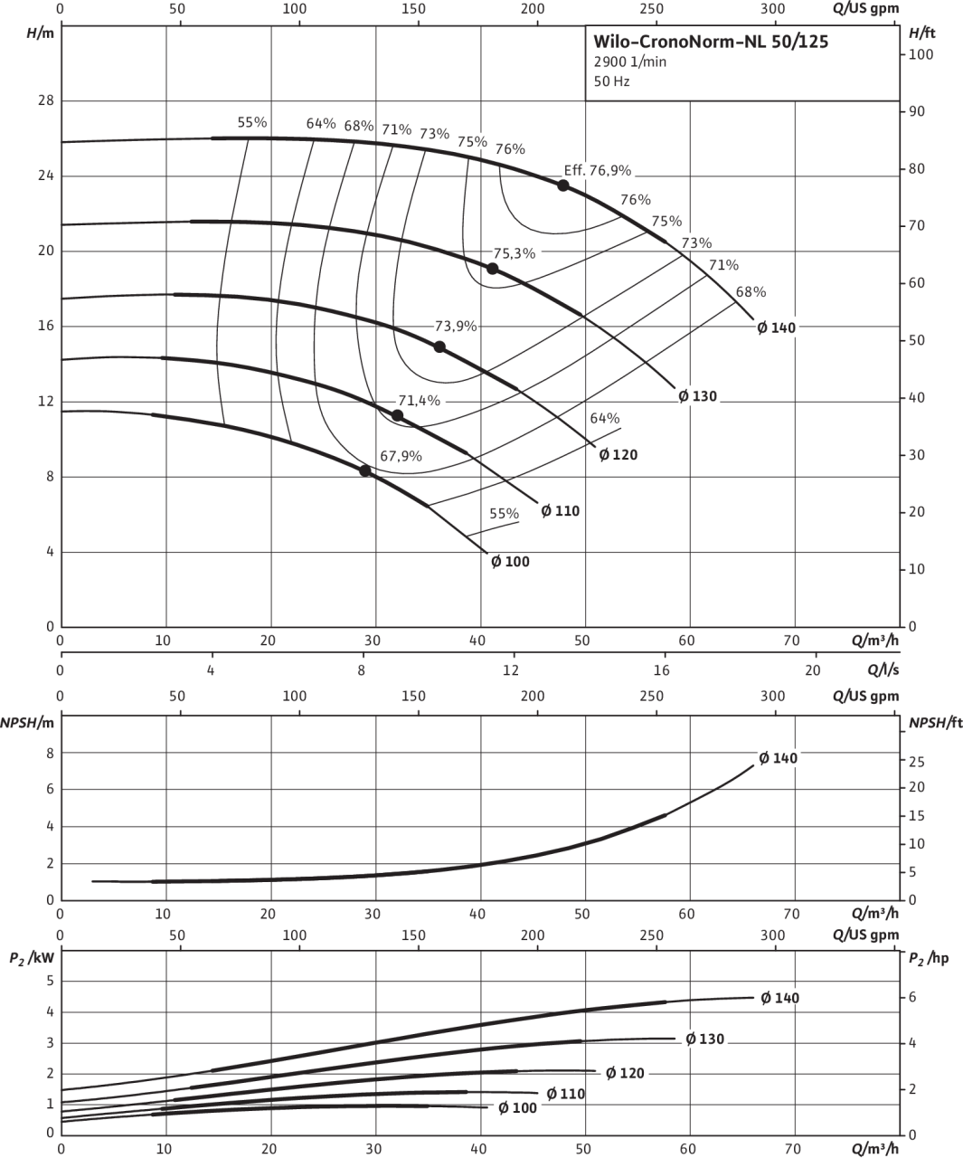 Электродвигатель IEC с 3 термодатчиками. Уплотнение вала посредством скользящего торцового уплотнения до температуры 120 В°C. Корпус из серого чугуна, вал из нержавеющей стали, рабочее колесо из серого чугуна (рабочее колесо из бронзы доступно за дополнительную плату). Электродвигатели с технологией IE3.