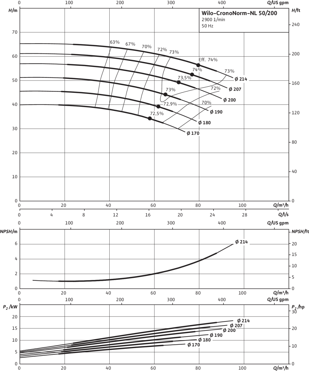 | Номинальный внутренний диаметр фланца (на стороне всасывания) | DN 65 |
