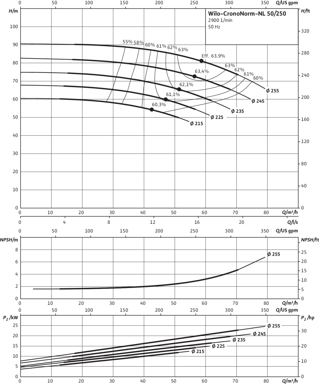 Электродвигатель IEC с 3 термодатчиками. Уплотнение вала посредством скользящего торцового уплотнения до температуры 120 В°C. Корпус из серого чугуна, вал из нержавеющей стали, рабочее колесо из серого чугуна (рабочее колесо из бронзы доступно за дополнительную плату). Электродвигатели с технологией IE3.