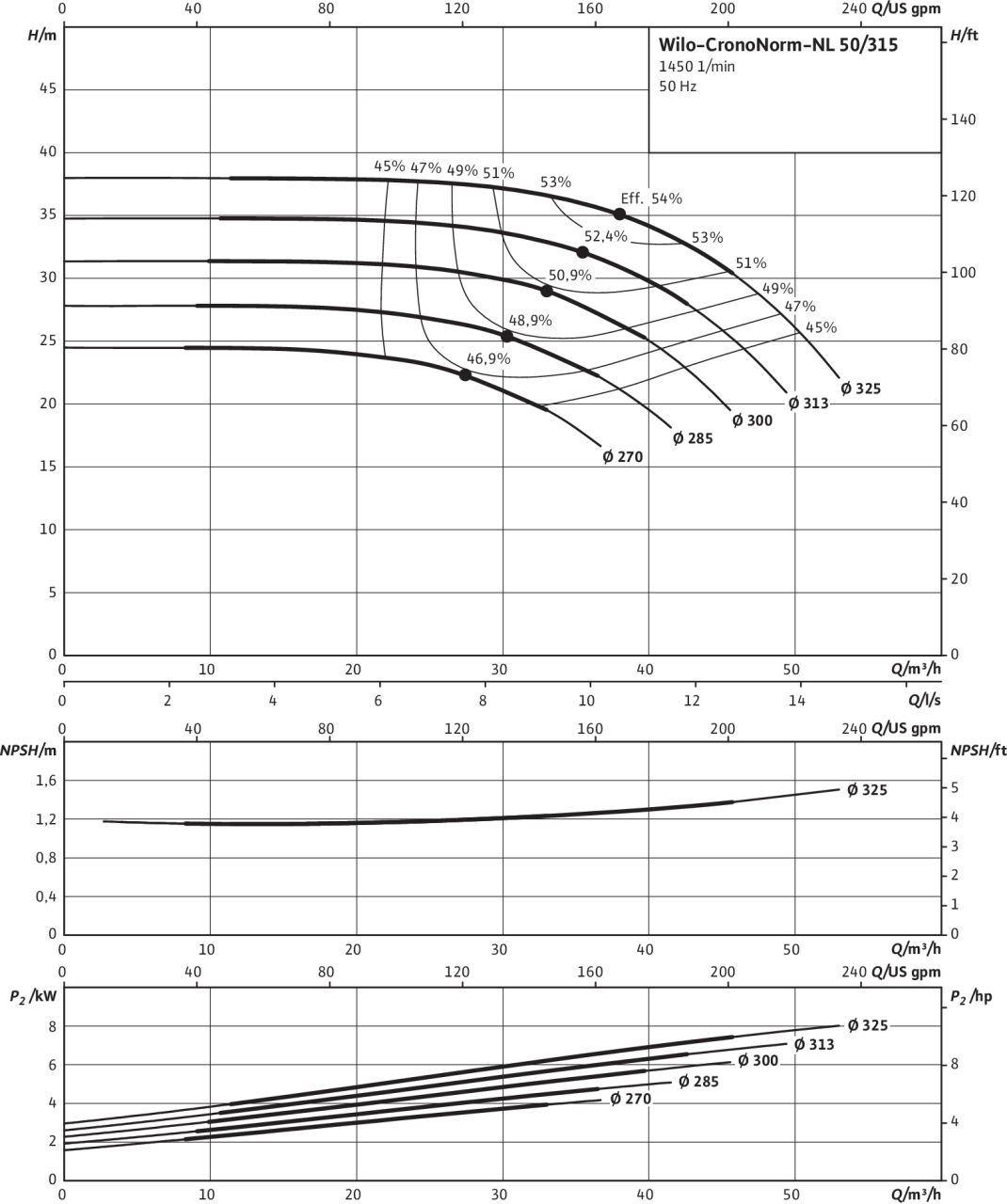 | Номинальный внутренний диаметр фланца (с напорной стороны) | DN 50 |