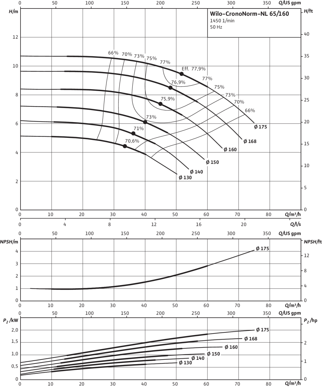 | Номинальный внутренний диаметр фланца (на стороне всасывания) | DN 80 |