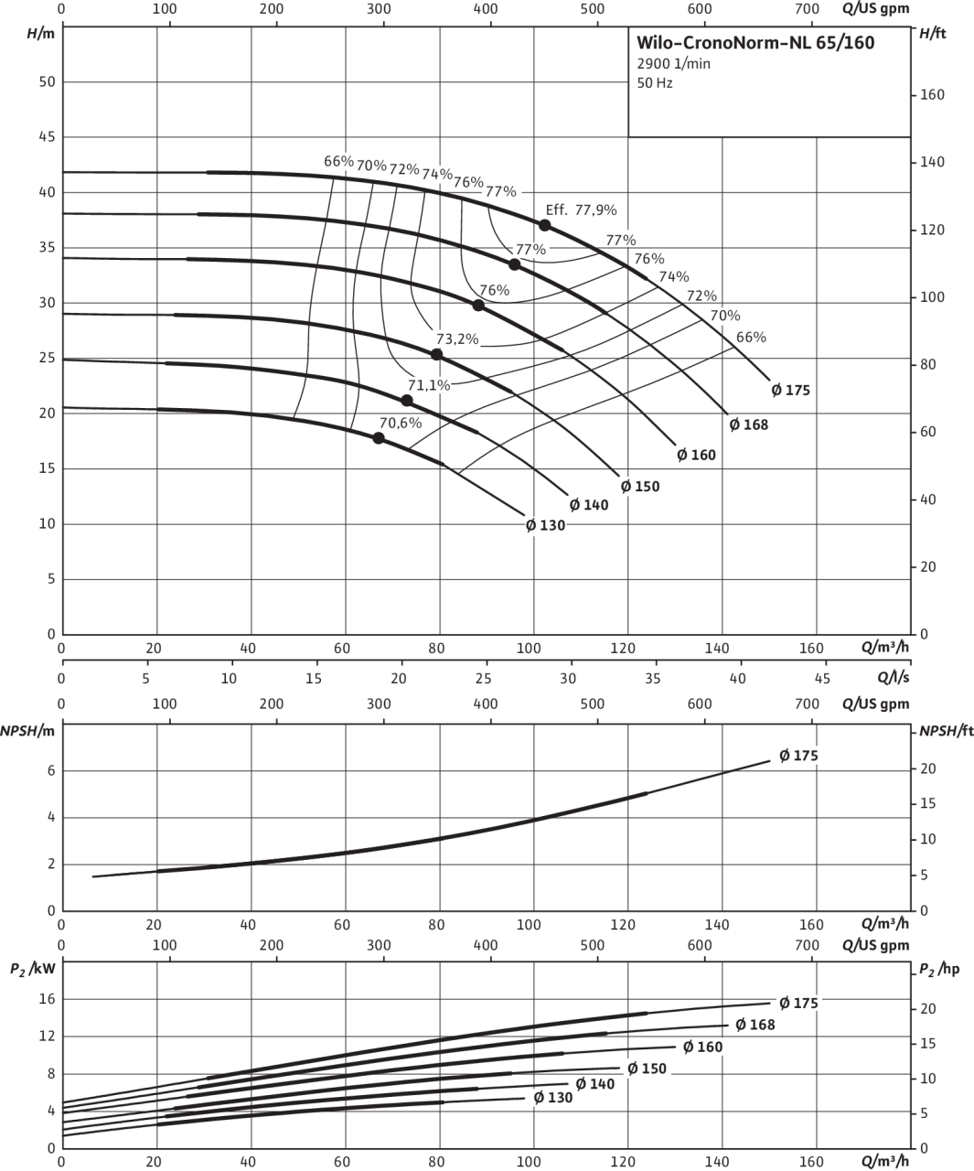 Электродвигатель IEC с 3 термодатчиками. Уплотнение вала посредством скользящего торцового уплотнения до температуры 120 В°C. Корпус из серого чугуна, вал из нержавеющей стали, рабочее колесо из серого чугуна (рабочее колесо из бронзы доступно за дополнительную плату). Электродвигатели с технологией IE3.
