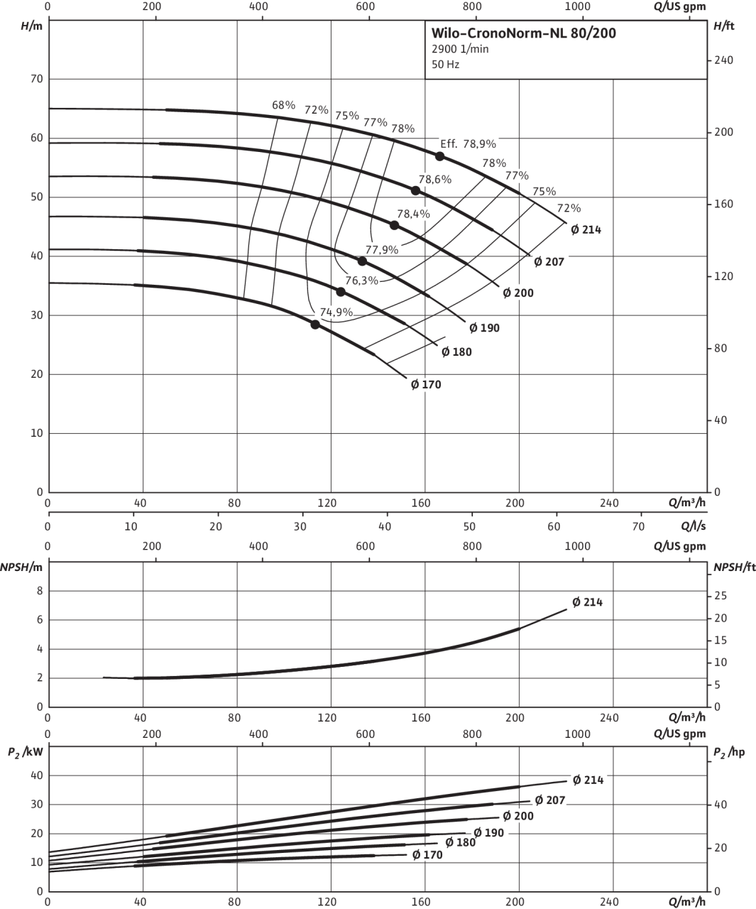 Электродвигатель IEC с 3 термодатчиками. Уплотнение вала посредством скользящего торцового уплотнения до температуры 120 В°C. Корпус из серого чугуна, вал из нержавеющей стали, рабочее колесо из серого чугуна (рабочее колесо из бронзы доступно за дополнительную плату). Электродвигатели с технологией IE3.
